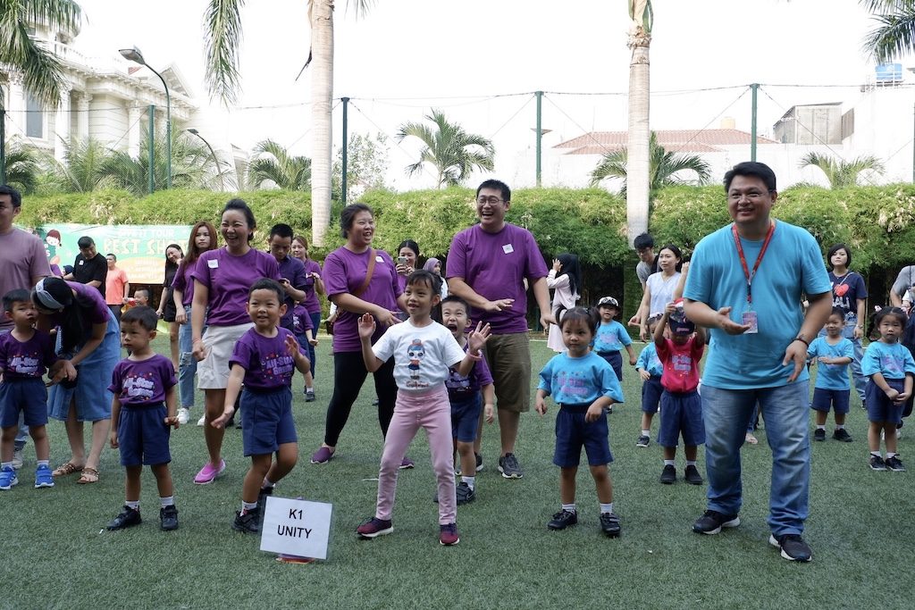 Last Saturday, our delightful Preschoolers competed in the Preschool Sports Day. Each level showcased their talent in dancing through Field Demonstration and their skills in performing Cheers and Yell confidently in front of a big crowd. Parents and other members of their family are invited to be a part of this event. We prepared various games not only for the children but also for the whole family, for mums and also for dads. Parents had a chance to show their good rapport, support and build teamwork to other parents in their level throughout the games in order to win their group. It was a pleasure to see everyone (parents and children) performs with great energy and enthusiasm. This is always one of our favourite days of the year; to see the children bursting with laughter and joy is very special. Please see the photos below.