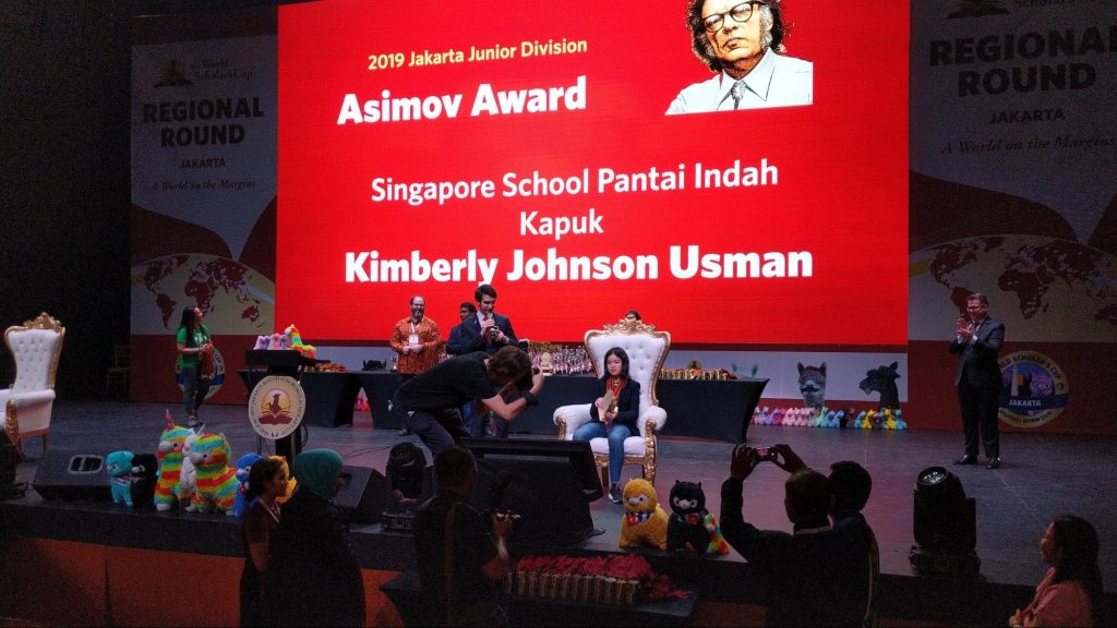 恭喜我们的世界学者杯团队! 2019年5月4日至5日,66名学生参加了雅加达世界学者杯。比赛结果令人难以置信!祝贺来自Sec 2A的Kimberly Usman!雅加达初级组的最佳学者。 Kimberly在世界学者杯雅加达回合中获得了Asimov 阿西莫夫奖,该奖项是初级学者中最高级别的学者奖项。Kimberly获得了所有科目的六枚金牌 – 特殊领域,历史,科学,艺术和音乐,社会研究和文学。奖杯,金牌,特别的Asimov牌匾和羊驼!祝贺来自整个SIS-PIK社区的Kimberly。我们为你的成就感到自豪!