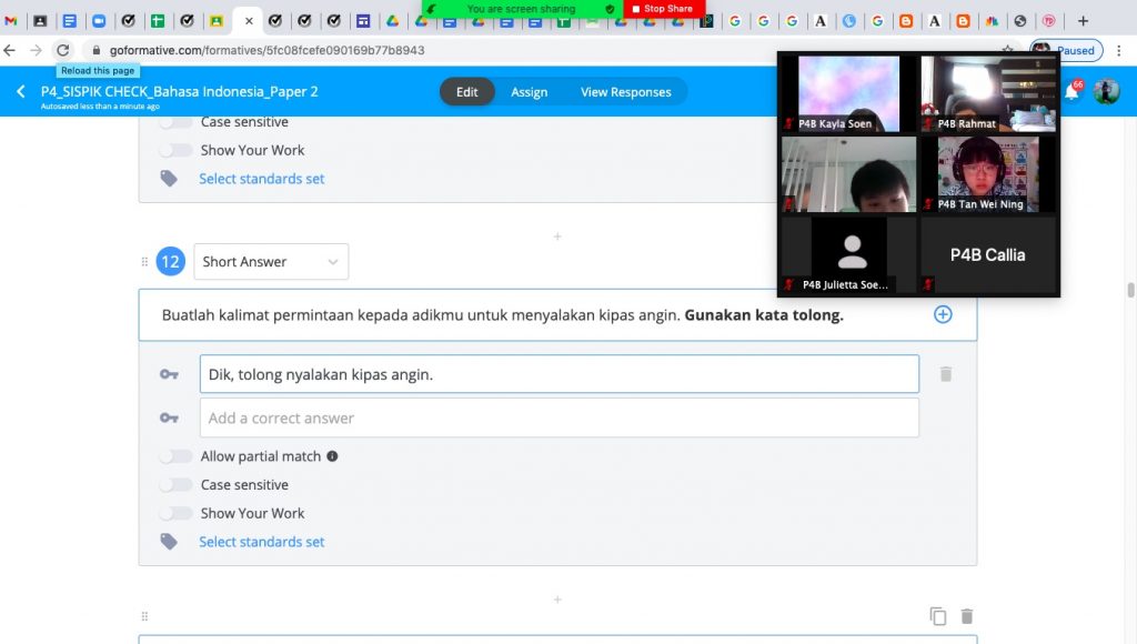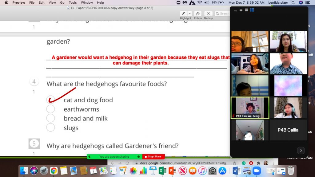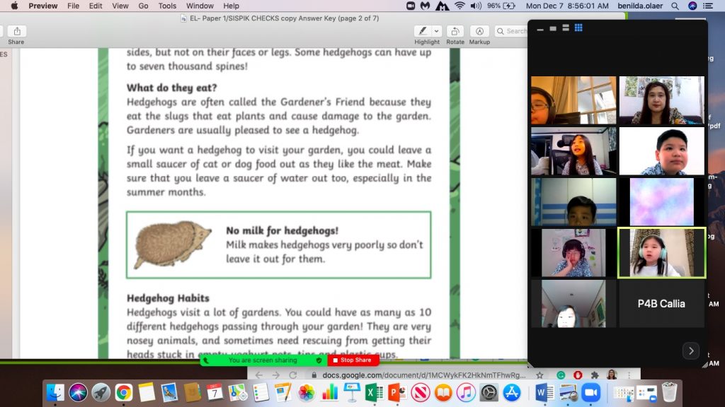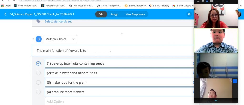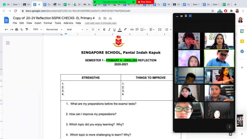 Kami baru saja menyelesaikan minggu terakhir pembelajaran kami di Semester 1. Siswa/i kami telah melakukan berbagai hal luar biasa untuk menyesuaikan diri mereka dengan pembelajaran virtual. Minggu lalu, kami menilai para siswa kami melalui SIS-PIK Checks. Siswa/i kami sangat paham teknologi dan menyelesaikan SIS-PIK Checks secara virtual dengan menggunakan breakout rooms di Zoom dan Go Formative. Semua itu berjalan dengan sukses!
