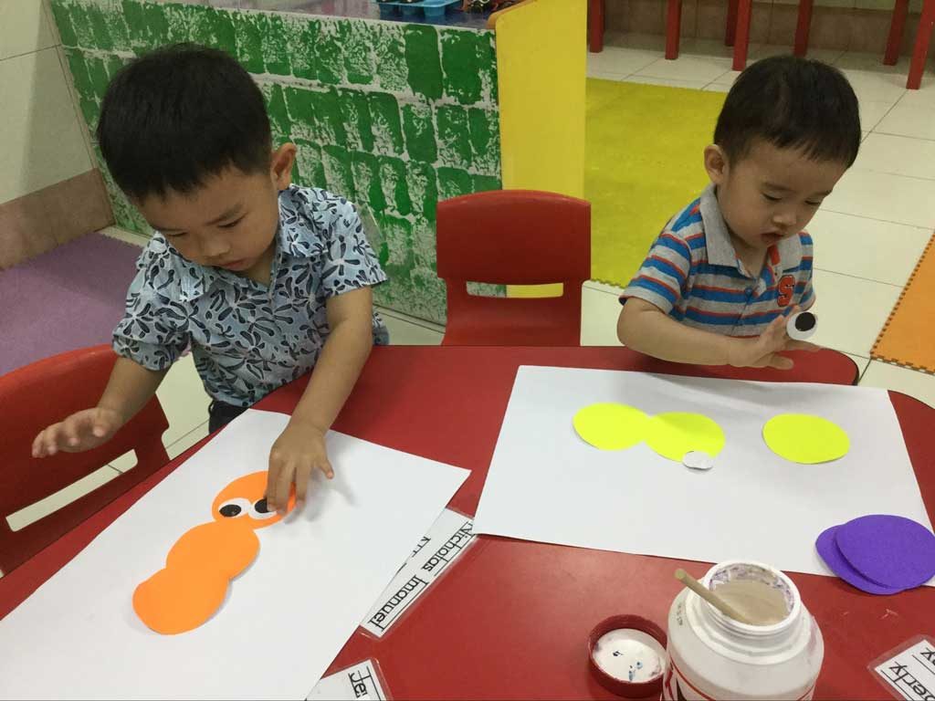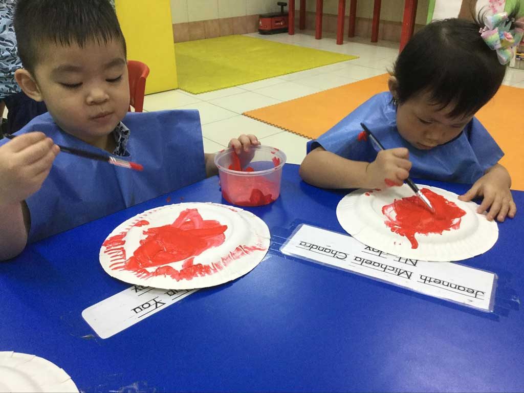 Our youngest community at school is having a blast painting with the brush. They love the way it feels when they smear paint on the paper, how it looks when they paste different shapes and colours on paper.