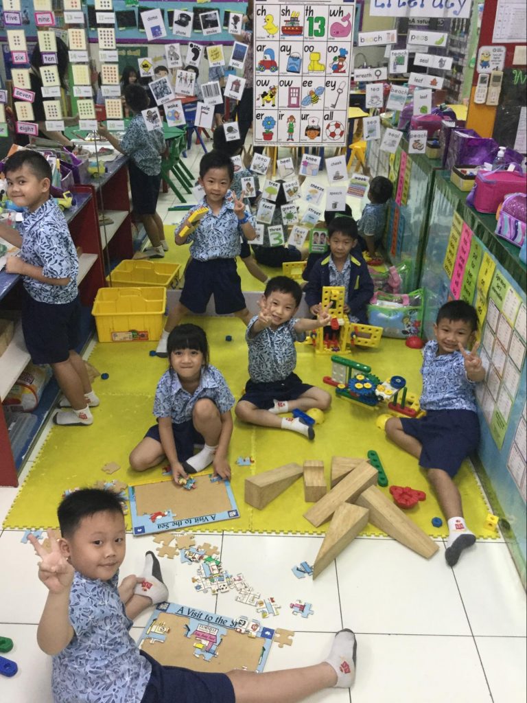Every morning before the formal class starts at 8:00 am, the K2 Respect children have a Free Play time. Free Play Time is the choice of every student to choose from the series of learning areas found in the classroom. They have the option to explore the different learning areas such as Pretend Play Area, Construction Area, Fine Motor Area and Art Area.