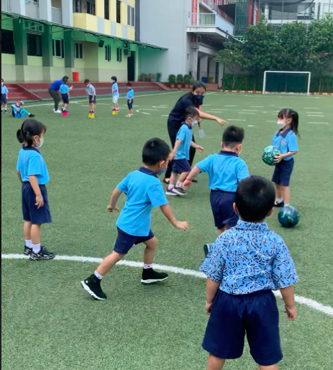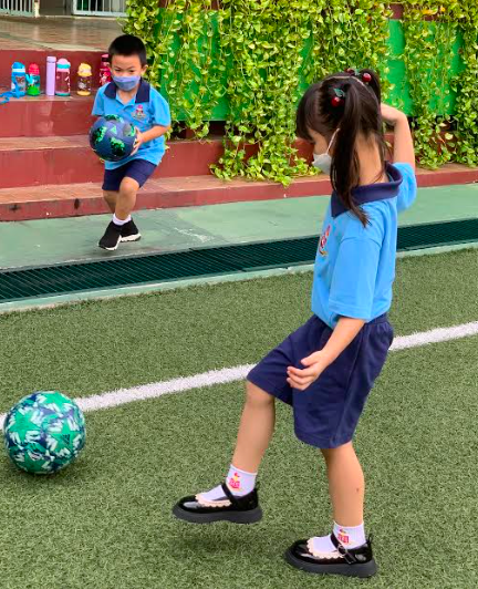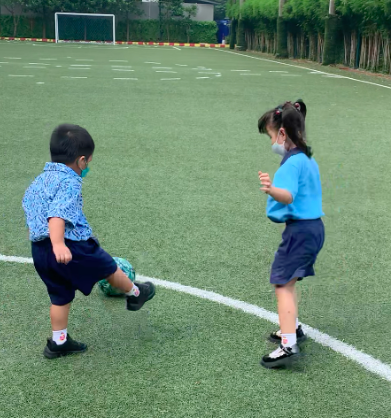 Kemampuan menendang bola merupakan salah satu gerakan penting yang diharapkan dapat dilakukan oleh seorang anak di kelas nursery. Di SIS-PIK, kami membantu siswa kami mengembangkan keterampilan psikomotorik mereka dengan memasukkan sejumlah manuver seperti tendangan bola ke depan di kelas pelajaran Olahraga kami. Dengan mengadakan aktivitas di luar ruangan di lapangan sekolah kami, siswa-siswi dapat bermain dengan teman-teman mereka sambil memastikan jarak aman di sekolah. Sesungguhnya, siswa-siswi kami selalu senang ketika kami membawa mereka ke luar ruangan untuk bermain sambil belajar.