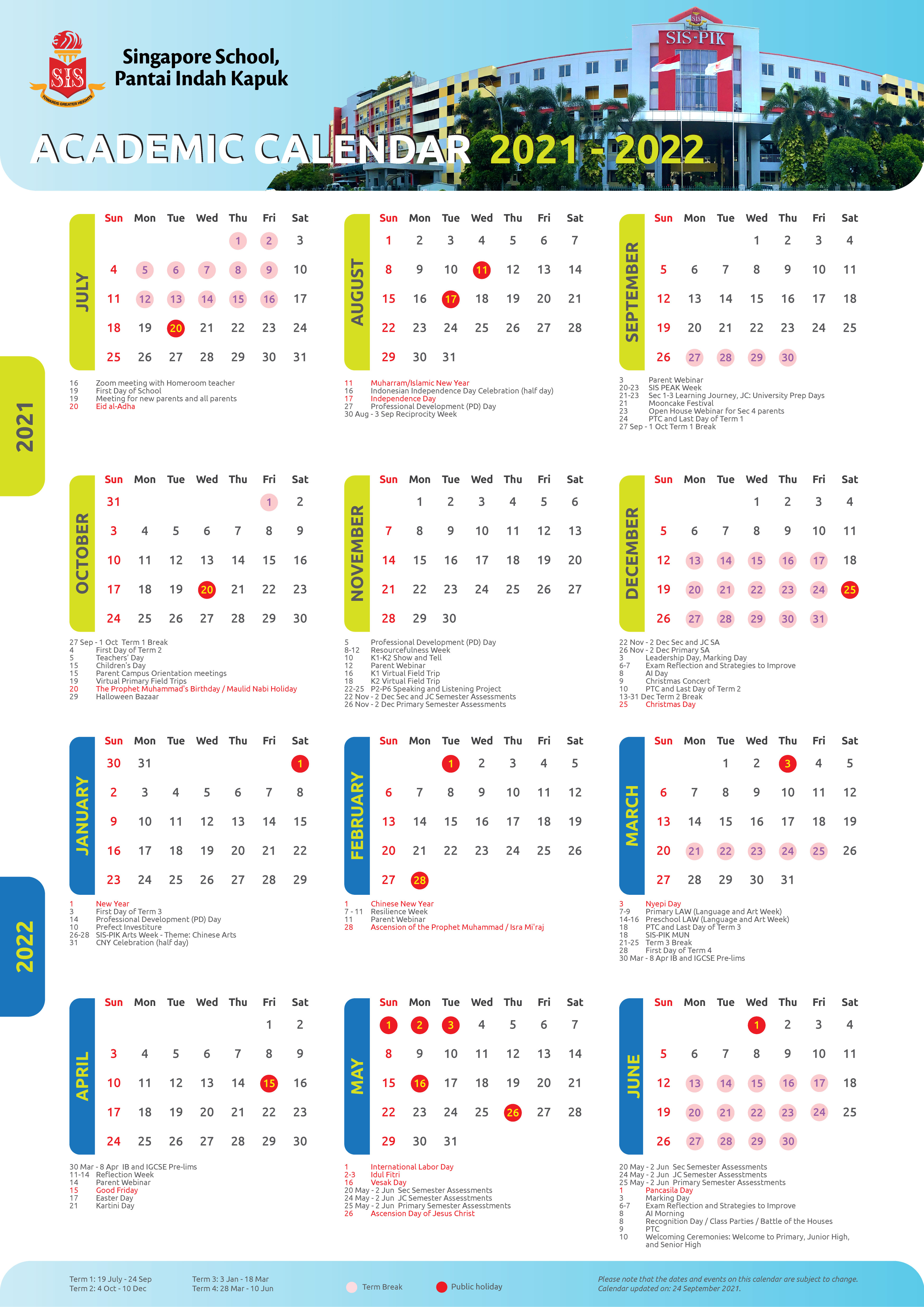 Please note that the dates and events on this calendar are subject to change.