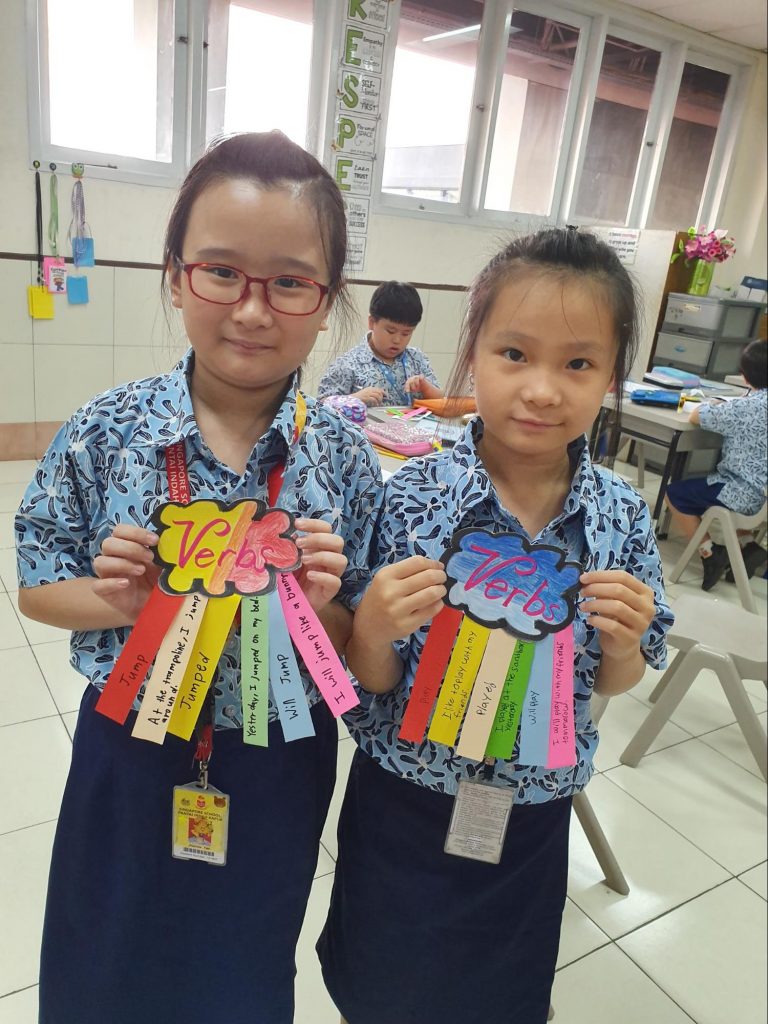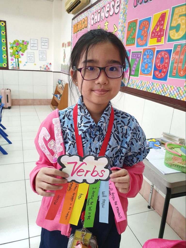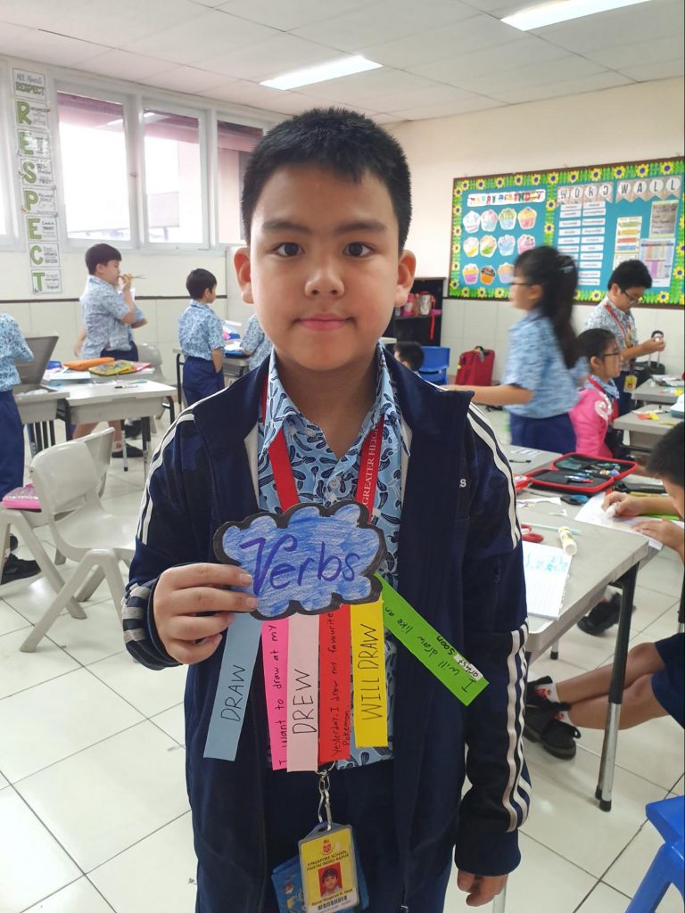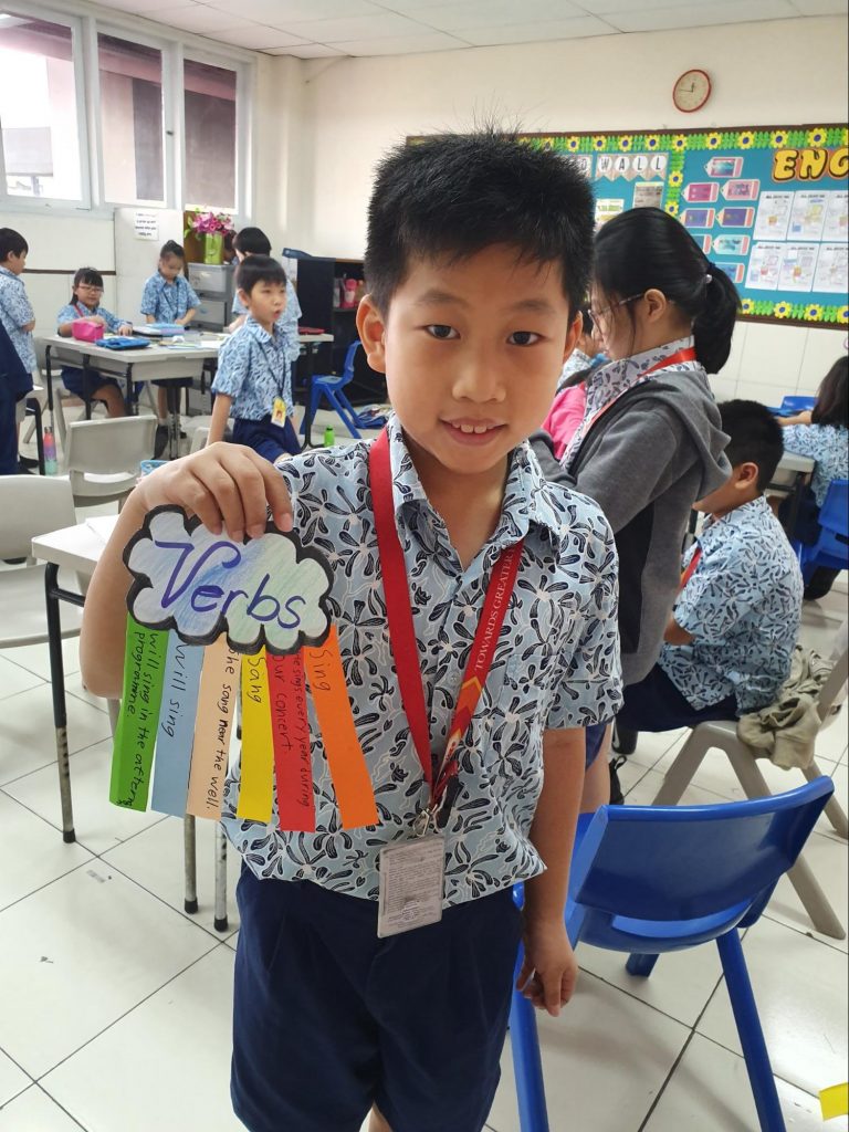 英语艺术时间很有趣!作为动词时态的丰富活动,学生们制作了彩虹云。他们每个人都选择了一个动词,并以现在时,过去时和将来时使用这个动词。