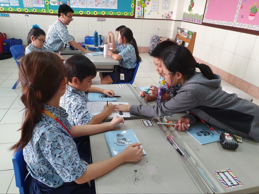 随着时间的推移,学生们开始日常学习:他们整齐地将背包安放在教室后,拿起他们最喜欢的故事书,然后安静地读书。这些孩子在思考与分享活动中的互相交流真是太惊人了!当他们全身心投入活动时,他们会在课堂上全神贯注。他们做各种各样的活动,如查字典比赛,拼写练习,心算练习,实验等等。看看我们的学习者在行动,如下图所示: