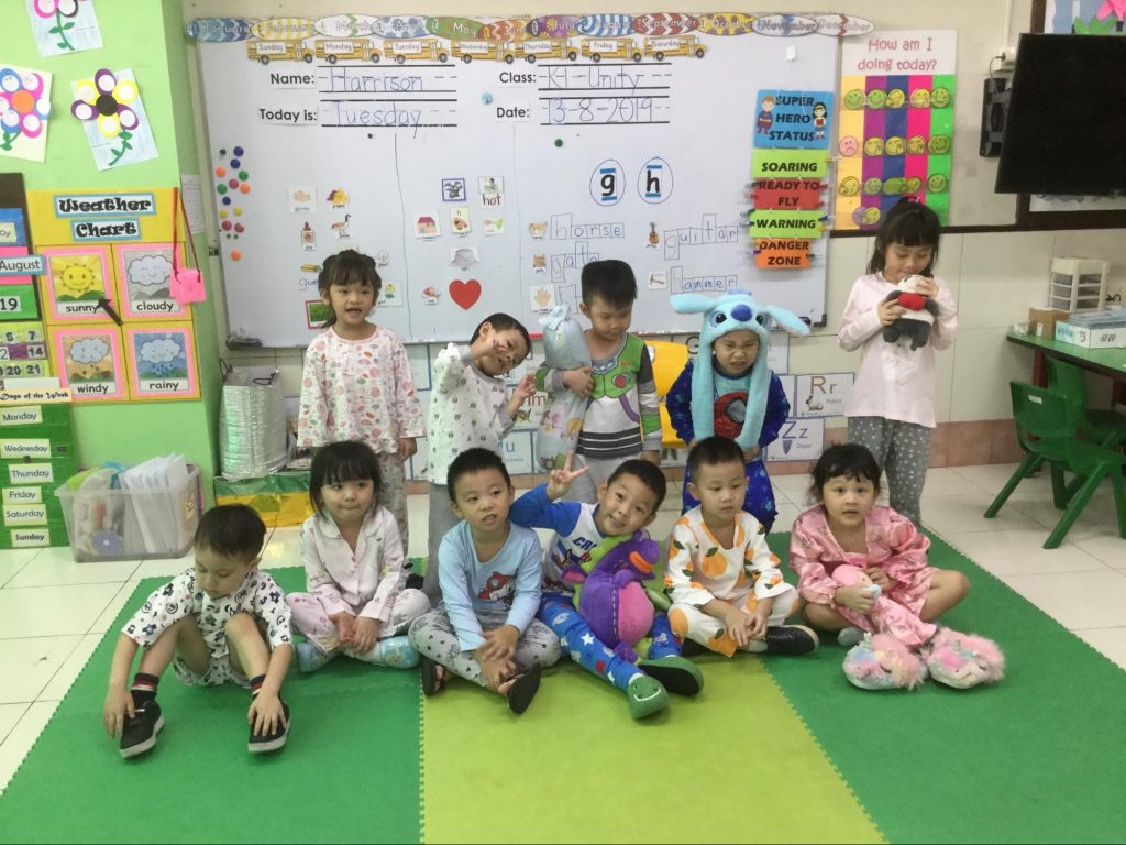 幼儿园的睡衣日 为了配合关于良好卫生习惯的教学内容,2019年8月13日(上周二),幼儿园小朋友们在学校度过了一个睡衣日。看到来自幼儿园小班到大班的所有孩子都穿着睡衣,手里拿着他们最喜欢的枕头或毛绒玩具真是太有趣了。他们的老师也穿着最喜欢的睡衣,参加了这个特殊的睡衣日。 在那一天,孩子们了解到良好睡眠习惯的重要性,明白在睡觉之前,他们需要遵循一些习惯,如洗澡,刷牙,梳理头发,换睡衣。每天晚上睡个好觉会让你的身体更加强壮,并且对每天在校的日常活动更机警。