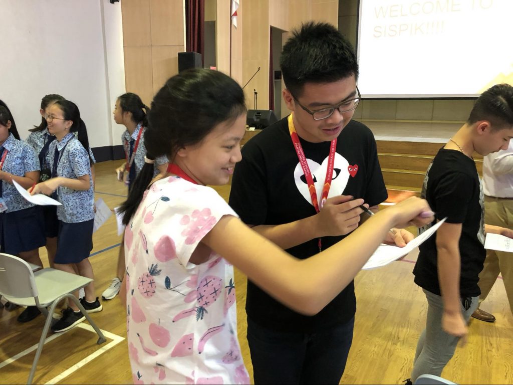 Para siswa baru menikmati acara pada hari itu dengan memperkenalkan diri mereka masing-masing melalui permainan bingo manusia. Prefek berbagi beberapa informasi penting mengenai kegiatan siswa, persoalan akademik dan pengalaman mereka di ekstrakurikuler/CCA. Para siswa baru juga menulis harapan mereka untuk pengalaman pembelajaran baru mereka di SIS-PIK. Sebagai penutup program orientasi, prefek mengajak para siswa baru dengan tur sekolah.