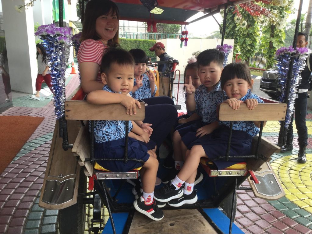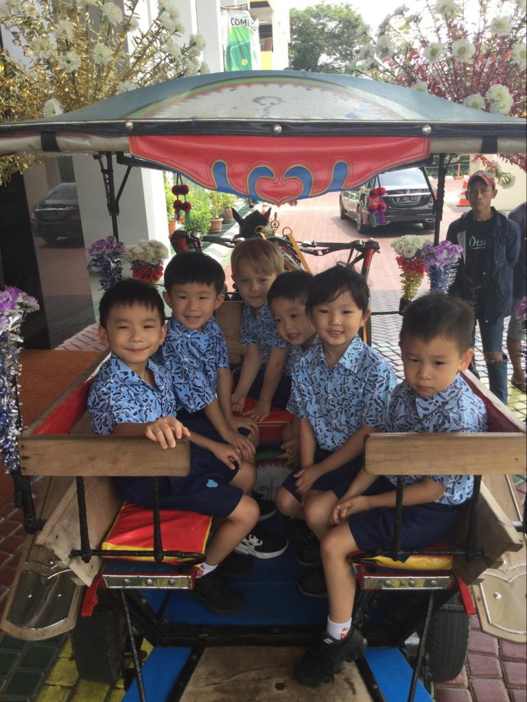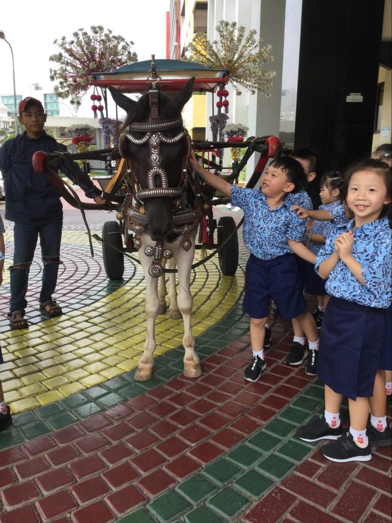 乘坐马车 为了增强对交通工具的学习经验,我们希望孩子们乘坐印尼传统的运输工具“ Delman”(马车)时有一种特殊的旅行感觉。 每个孩子都有机会乘坐马车,跟随我们友好的骑师’Faisal’和可爱的马’Bang Mamat’围绕SIS社区一周。 这对孩子们来说是一次愉快的体验,他们喜欢这个活动的每一秒。