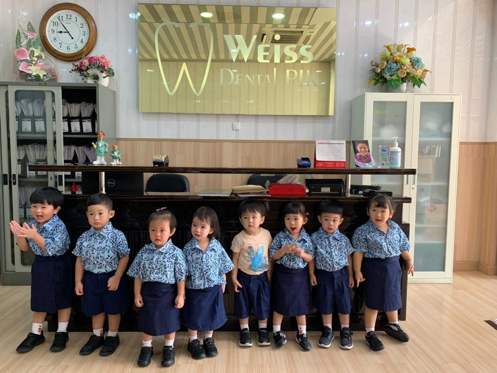 为了提高学龄前儿童口腔卫生和牙科保健的重要性,本周我们参观PIK的牙科诊所WEISS。 幼儿园儿童可以在诊所享受所有活动。 活动包括牙齿检查,刷牙,绘画和涂色。 这次去牙科诊所访问为孩子们提供了有意义的经验和机会,让孩子们以一种无威胁且友好的方式与牙医见面。