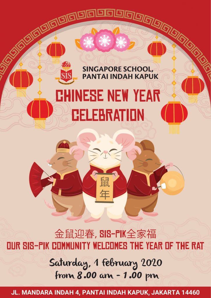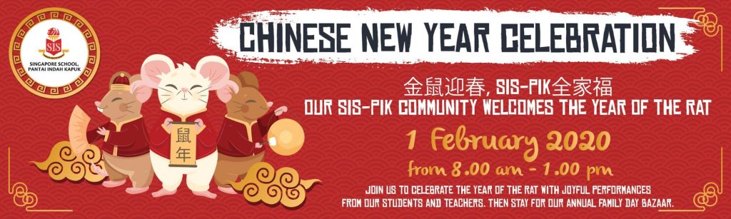 Perayaan Tahun Baru Imlek dan Bazar Hari Keluarga SIS-PIK akan dilaksanakan pada hari Sabtu, 1 Februari 2020. Tema tahun ini adalah “Komunitas SIS-PIK Menyambut Tahun Tikus.” Berbagai penampilan dari Preschool, Primary, dan Secondary akan memeriahkan acara ini di ruang MPH. Selain pertunjukan dari siswa/i SIS-PIK, kita juga mengadakan beberapa penarikan undian yang akan diumumkan selama acara berlangsung. Kita mengundang semua komunitas sekolah untuk hadir dan menikmati makanan di MPH yang akan dipersiapkan oleh para siswa Secondary, dimana stan makanan tersebut disesuaikan dengan tema Tahun Baru Imlek. Sedangkan para siswa Primary akan membuat berbagai permainan yang menarik dan menyenangkan di lantai 3. Kami mengundang Anda semua untuk datang merayakan Tahun Baru Imlek yang akan berkesan bagi kita semua.
