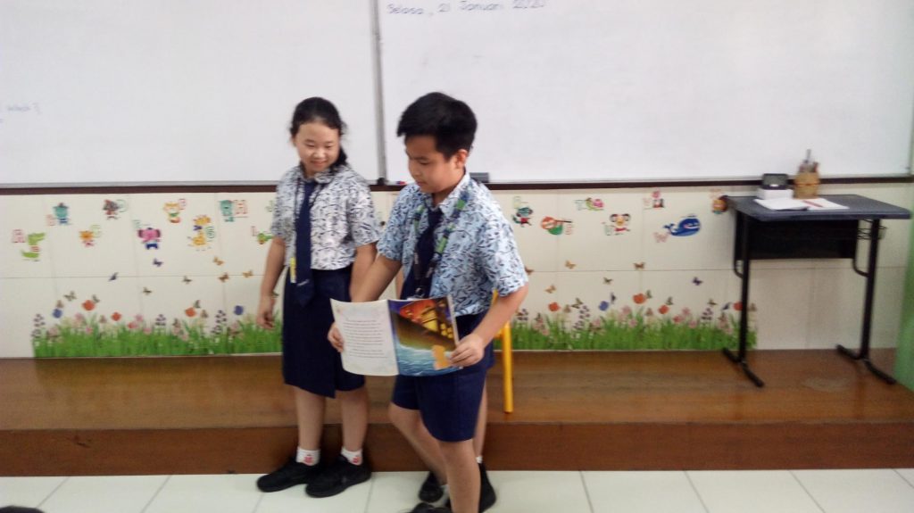 Pada hari Selasa lalu, 21 Januari, beberapa siswa dari Prefek Primary, diantaranya Gerald, Aurel dan Sheren mengunjungi kelas P1A pada waktu homeroom mereka di pagi hari untuk mempromosikan kecintaan untuk membaca di kelas. Para siswa di P1A mendengarkan mereka dengan penuh perhatian, ketika mereka menceritakan kisah “Putri Duyung Kecil”. Setelah bercerita, ada beberapa pertanyaan yang diajukan dan para siswa P1A menjawabnya dengan baik dan penuh semangat. Kecintaan mereka pada cerita terbukti, karena mereka meminta lebih. Pertahankan untuk MENYUKAI buku, P1A!