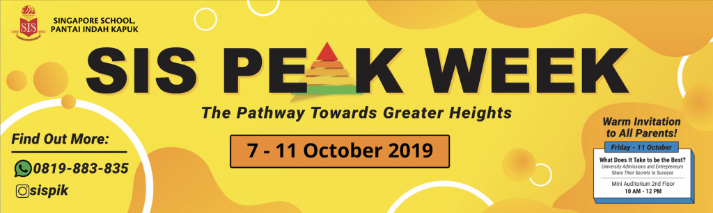 Dari tanggal 7 Oktober sampai 11 Oktober, SIS-PIK akan mengadakan acara Pekan SIS Peak.