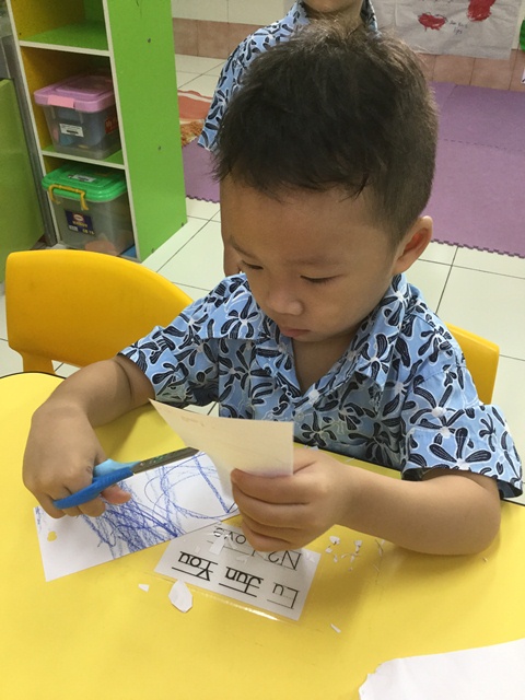 Anda dapat memberikan mereka latihan seperti menggunting, mewarnai, mencoret atau merobek kertas.