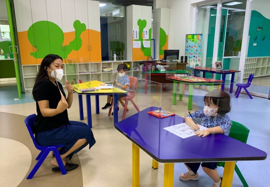 In every classroom, each preschooler has his or her own table and personal boxes (stationery and learning materials). We have implemented a “no sharing policy” to ensure that the environment remains safe while our preschoolers go through lessons with the teachers.