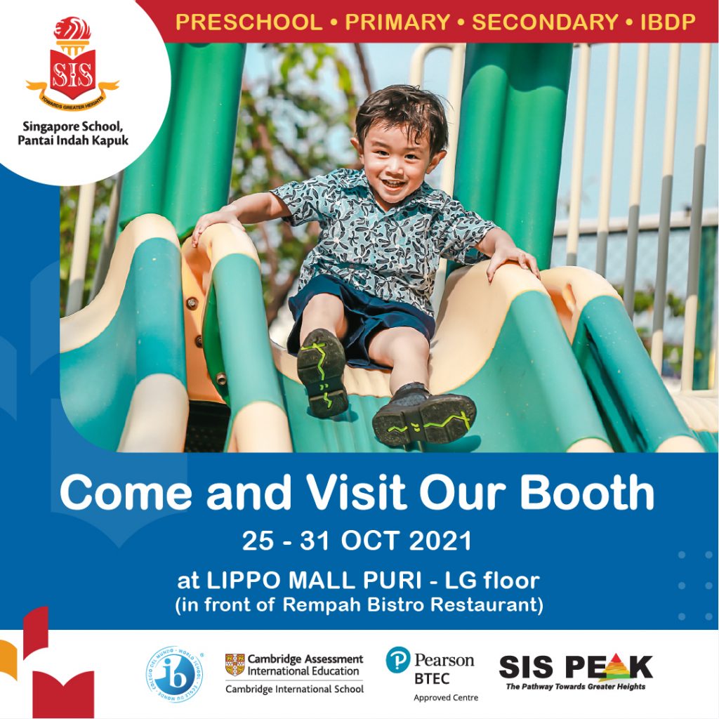 我们的SIS-PIK教育展正于2021年10月25日至31日在 Lippo Mall Puri 地下一层(LG Rempah Bistro餐厅前)举行。欢迎了解更多2022-2023学年关于我们是怎样的学校,以及我们会开设什么课程。