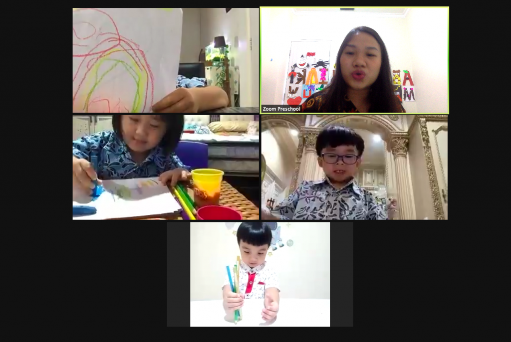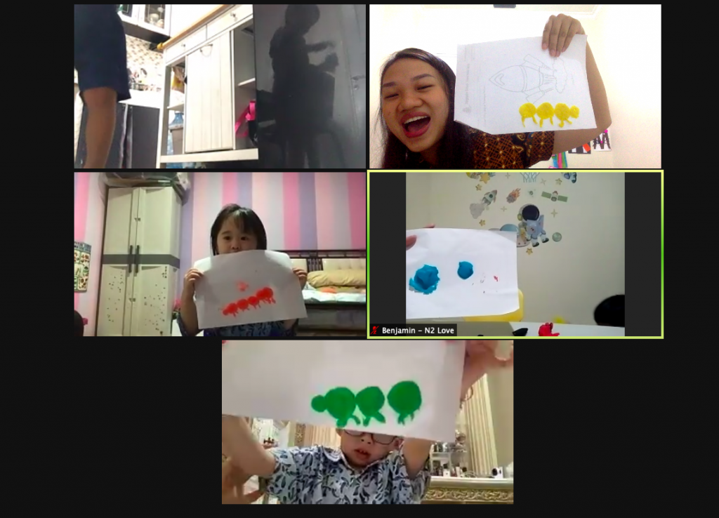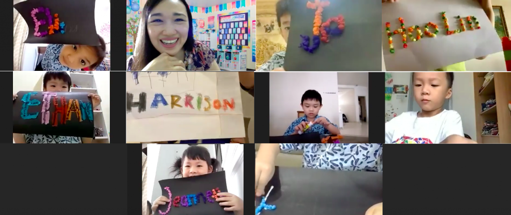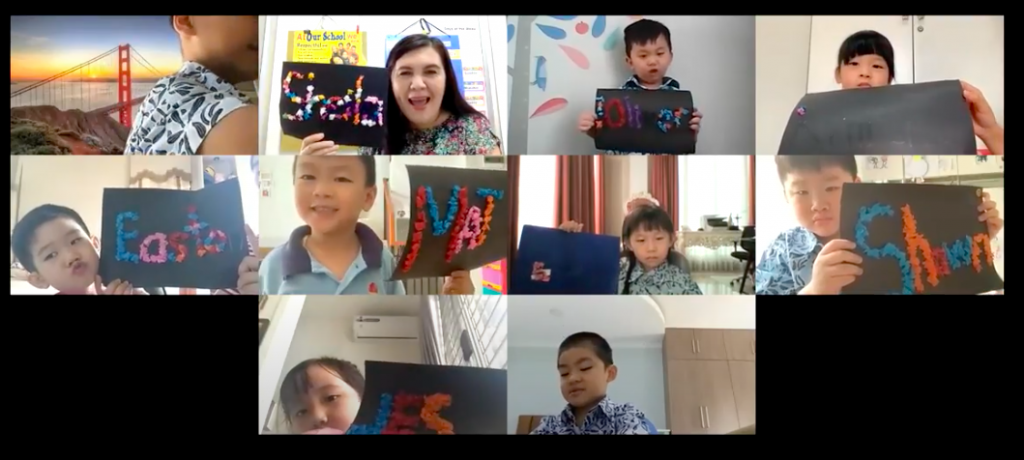 Anak-anak K1 dan K2 mengawali minggu pertama Pembelajaran Virtual mereka dengan menggambar dan membuat karya seni nama dengan menggunakan kertas krep, lem, dan manila hitam. Anak-anak Nursery sibuk membuat sketsa pelangi dan membentuk Play-Doh. Kami menghargai ide anak-anak kami saat mereka mengeksplorasi konsep baru dan bereksperimen melalui permainan dengan menggunakan berbagai bahan yang berbeda.