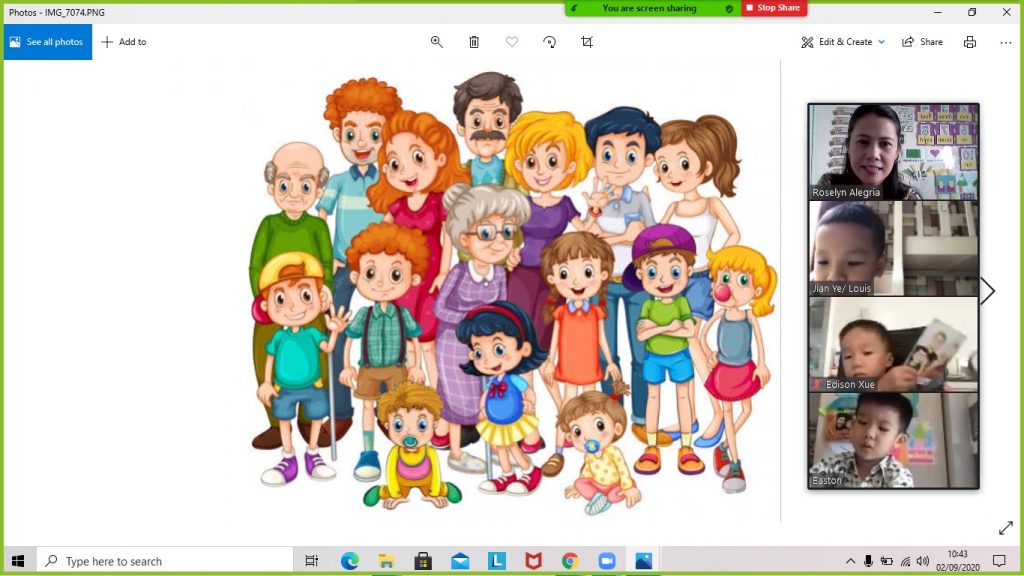 Anak-anak K1 Unity kami sangat senang saat belajar topik yang membahas tentang Keluarga dalam pelajaran Discovery of the World. Mereka sangat menikmati saat memperlihatkan foto keluarga mereka kepada teman-teman mereka serta memperkenalkan setiap anggota keluarga mereka di kelas. Anak-anak juga sangat tertarik untuk mengetahui tipe keluarga yang berbeda-beda, apakah mereka termasuk keluarga besar atau kecil. Mereka sangat senang mendengarkan diskusi tentang cara menunjukkan cinta dan perhatian mereka kepada keluarga.