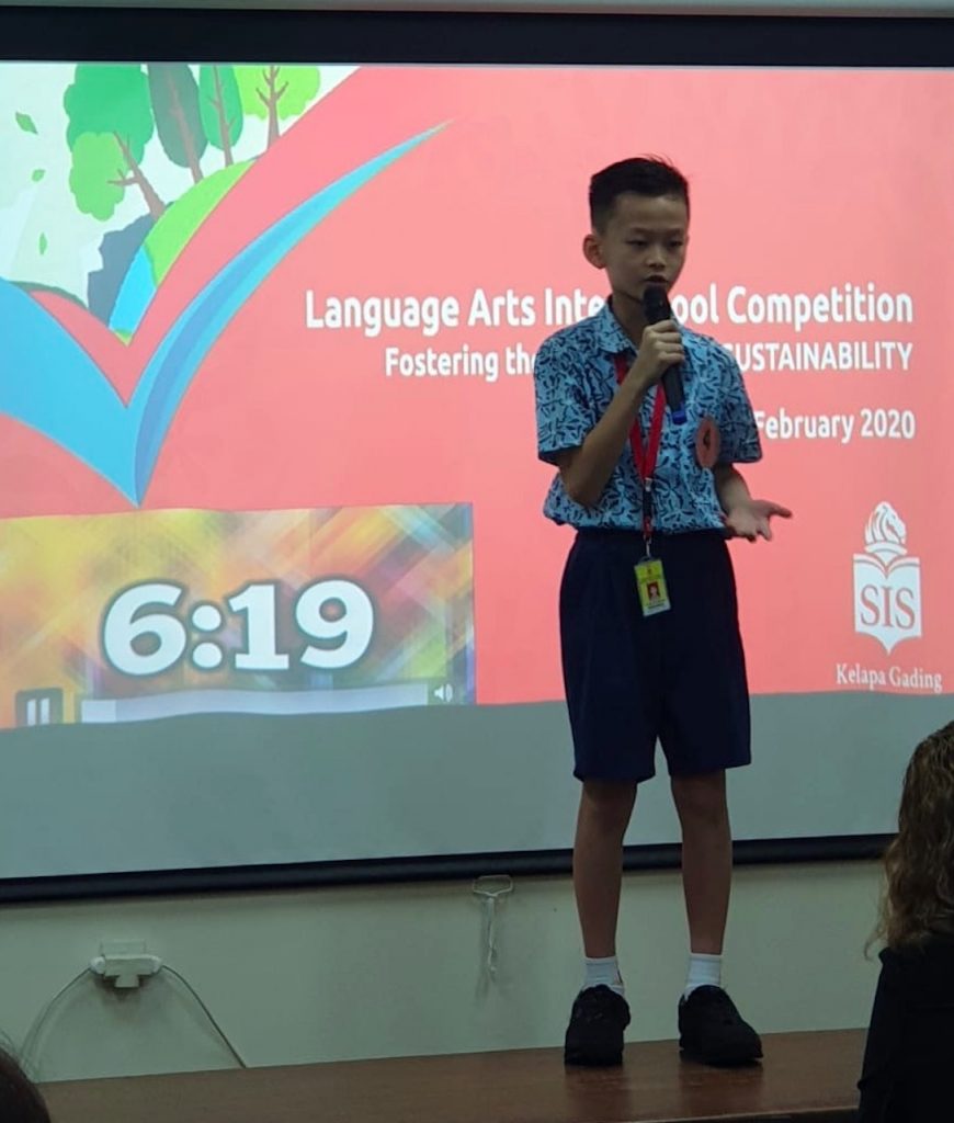 On Saturday, 8th February 2020, six Primary students represented SIS-PIK at SIS KG’s Language Arts Interschool Competition. Lewis Hernandez Khoe and Ashton Robida showcased their storytelling skills while Elijah Ezekiel Lontoc Harina and Joanne Caitlin Wijaya shared their talents in character interpretation. Weila Ann Fortus Gao and Reagan Felix Bongso delivered powerful oratorical speeches.