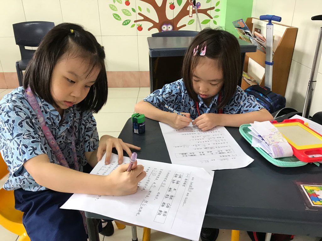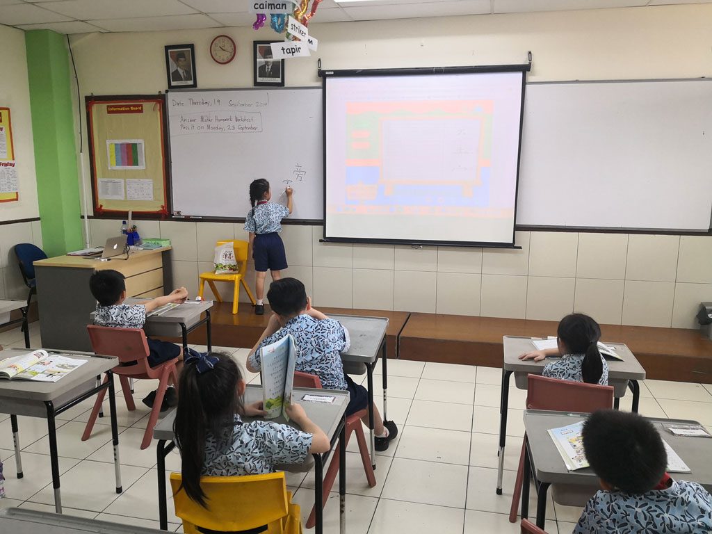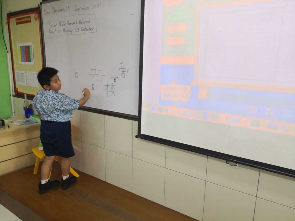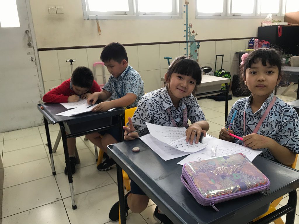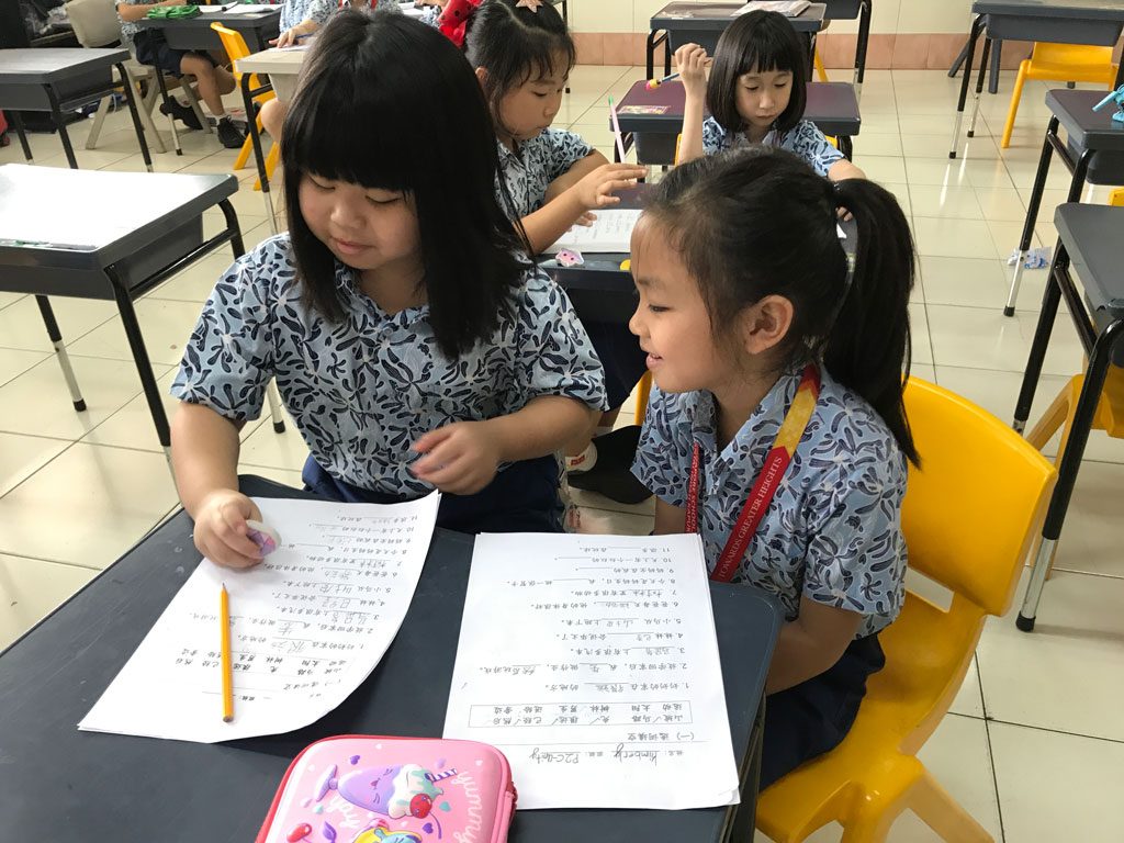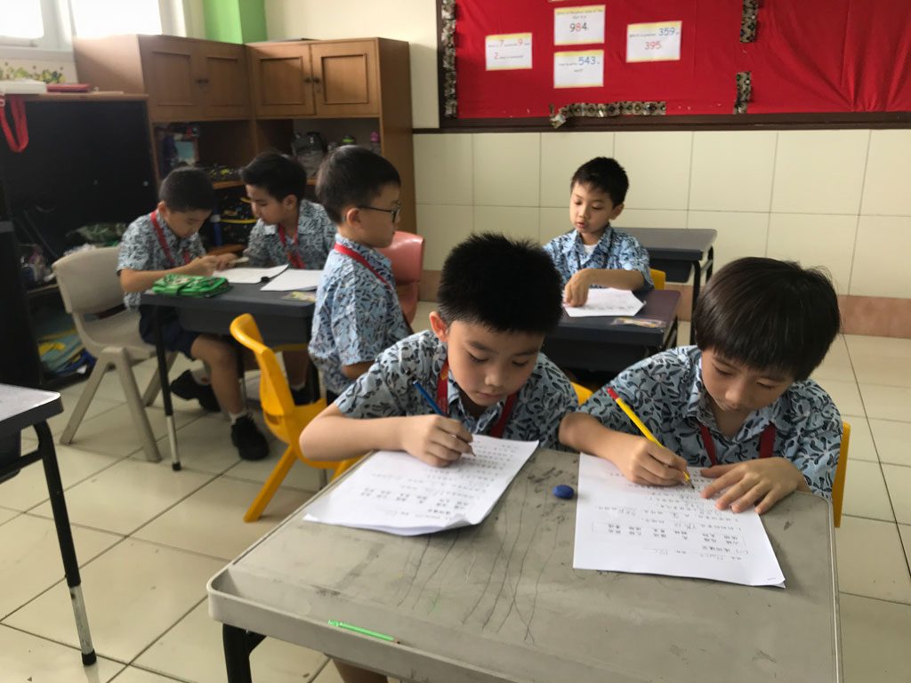 小学二年级的中文课堂 在第一学期,P2中文班的学生了解孩子长大的变化,农历新年,接待客人和尊重他人。 他们每天学习新单词,并在课堂笔记本上练习。 有时,我们玩游戏来帮助学生记住生词。 我们也一起做练习题。 我们应用了不同形式的教学,使学生以有趣的方式集中精力和学习。