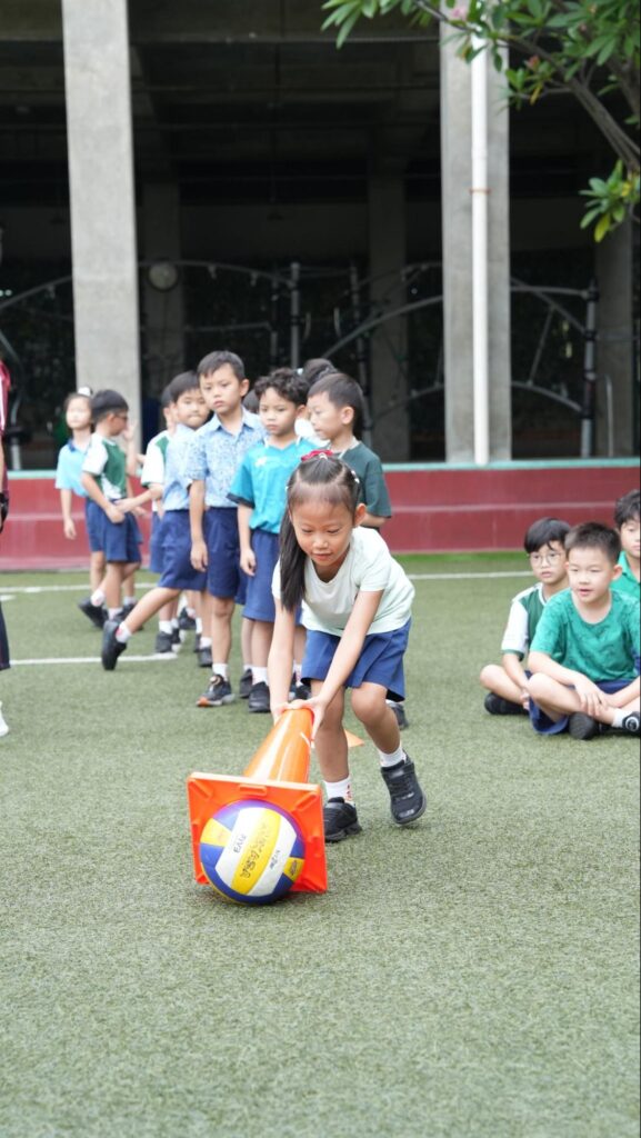 During the Red Stop Green Go game, students practised reflectiveness, staying alert and stopping on cue. The cone and ball transfer relay brought out reciprocity, as teammates encouraged one another and worked together to succeed. The running relay tested students’ resilience, with everyone giving their best effort from start to finish. Throughout the games, students also showed resourcefulness by adapting quickly, thinking on their feet, and supporting their teams.